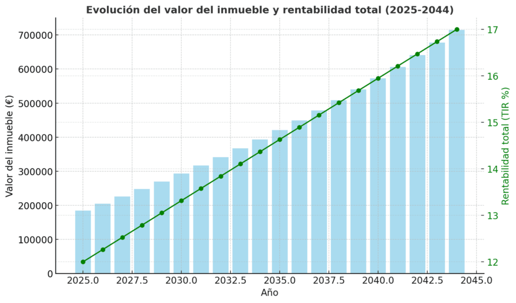 Mientras que, en un plazo de 20 años, la rentabilidad se consolida gracias al efecto de la revalorización del activo y a los ingresos acumulados, alcanzando un resultado global aún más elevado.